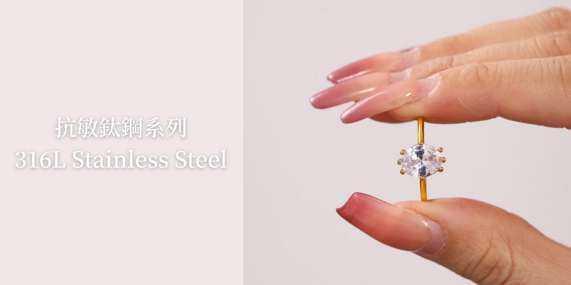鈦鋼 金色輕奢橢圓鋯石戒指