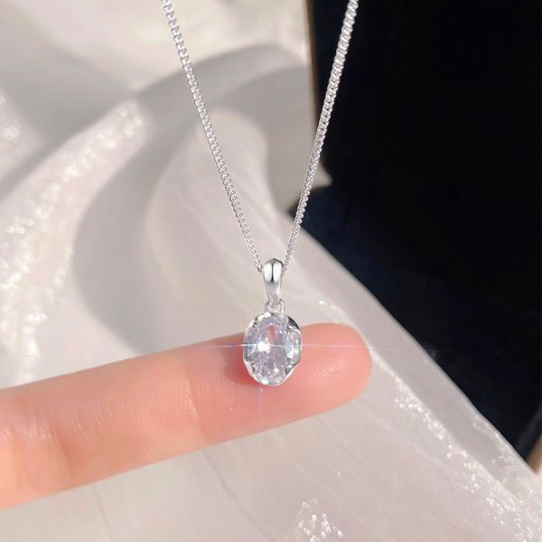925純銀 不規則橢圓鑲鑽吊墜項鍊